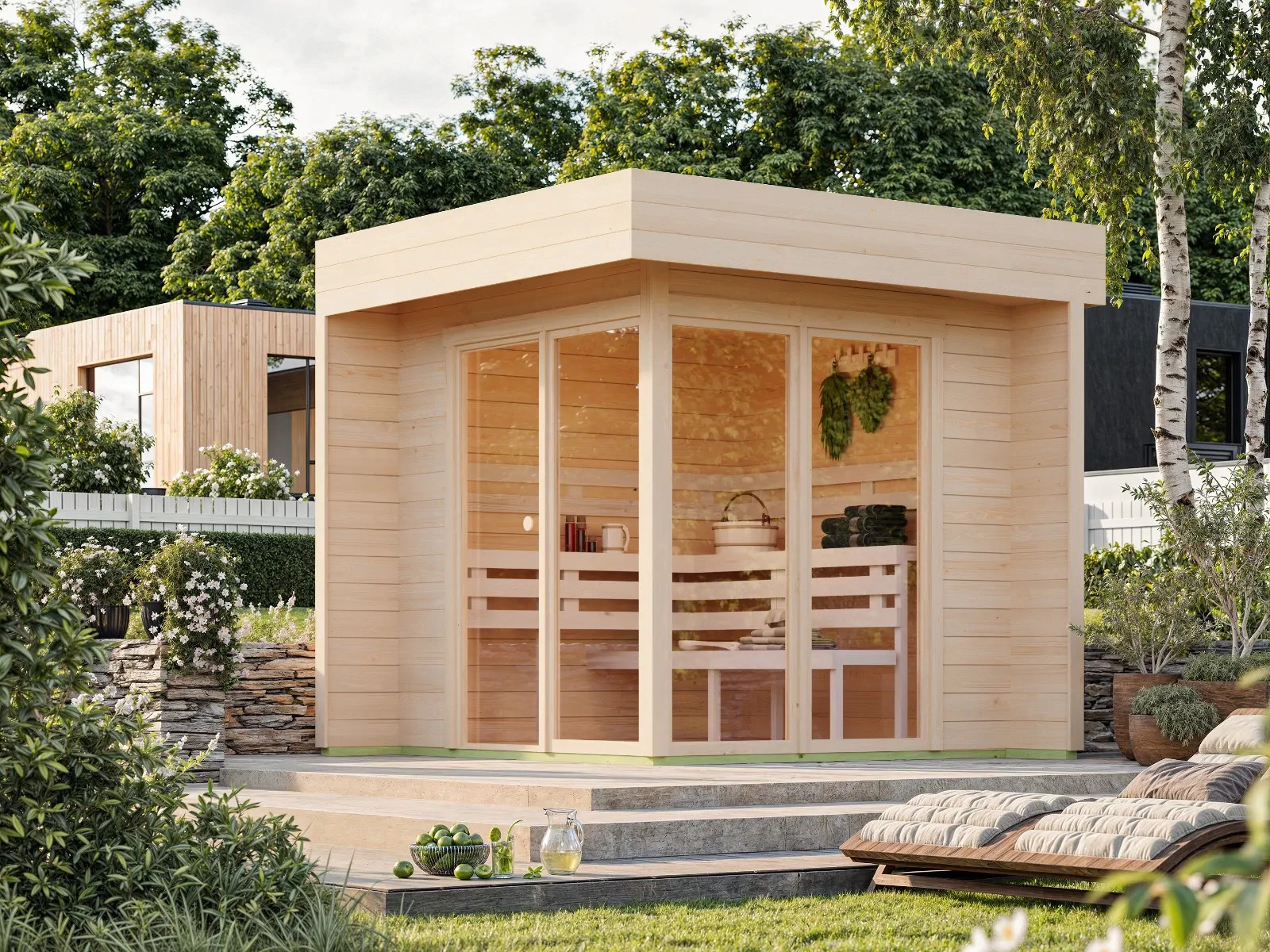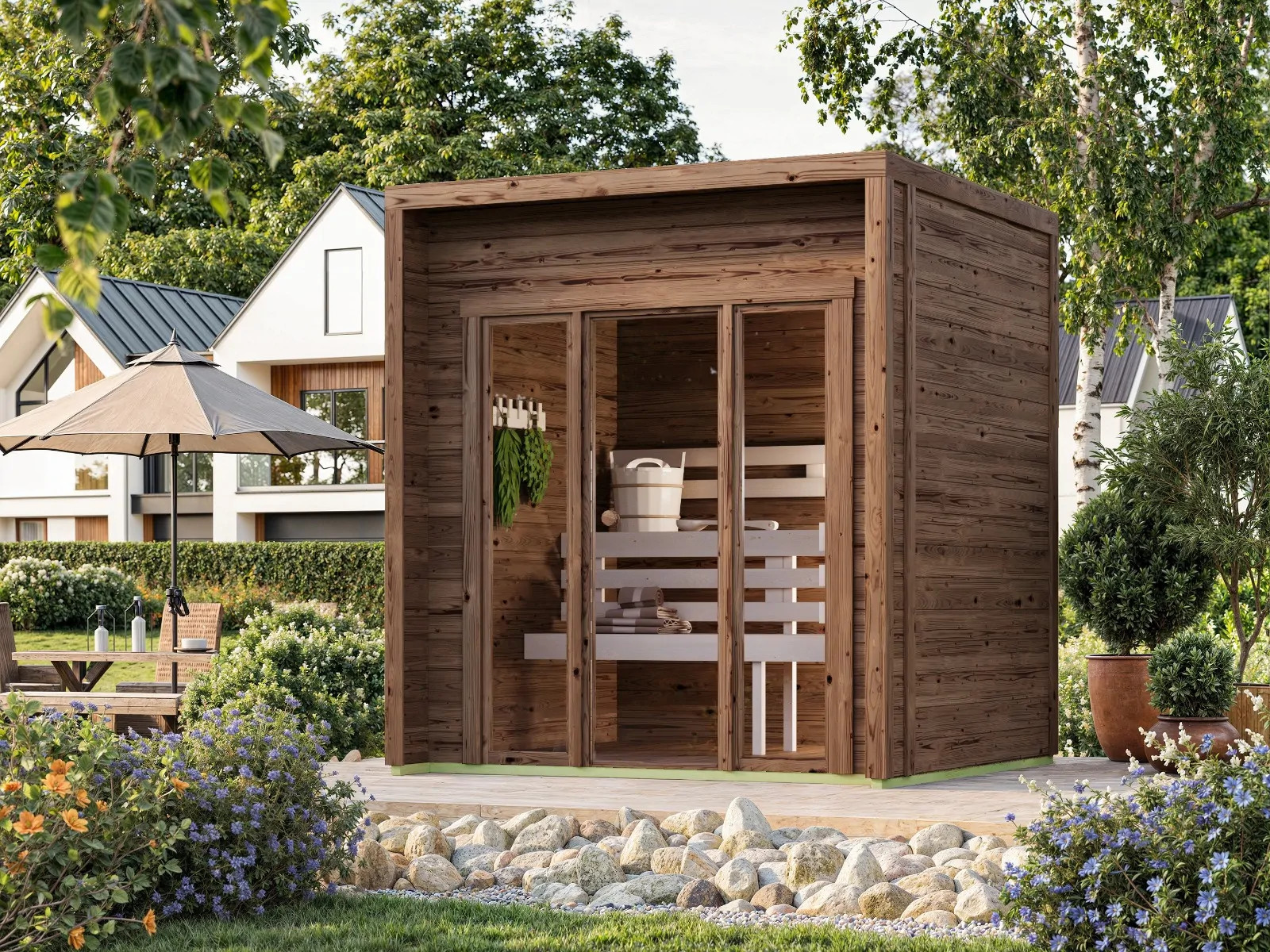 Sì, le nostre saune sono progettate per un utilizzo estivo e invernale, con materiali resistenti e legno nordico durevole.
