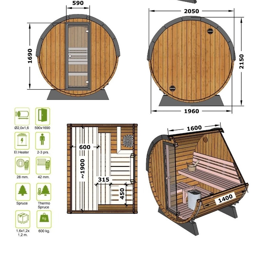Tutti i materiali utilizzati per questa sauna sono di qualità superiore.