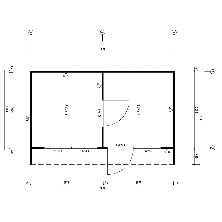 La sauna è realizzata con tronchi di legno nordici da 44 mm. Le panche della sauna sono in legno duro, il che significa che non si scaldano troppo durante il riscaldamento della sauna; tutte le altre parti in legno sono in abete nordico non trattato. Il tetto è rivestito in materiale bituminoso o EPDM (a pagamento), le finestre e le porte sono in vetro di sicurezza temperato.