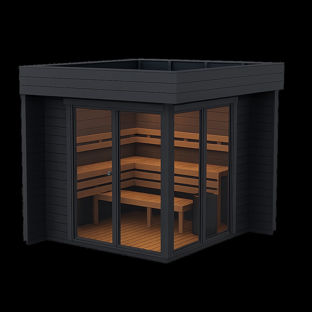 La Sauna Finlandese Esterna FRANCO S è una soluzione elegante e compatta per chi desidera portare il benessere nordico direttamente nel proprio giardino. Con dimensioni contenute e un design moderno, questa sauna da esterno è perfetta per 3-4 persone e si distingue per le sue ampie vetrate panoramiche, che offrono una vista immersiva sull'ambiente circostante.