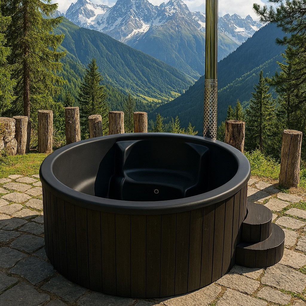 Vasca Idromassaggio da Esterno in Legno – TUNNA Nera 200 Premium